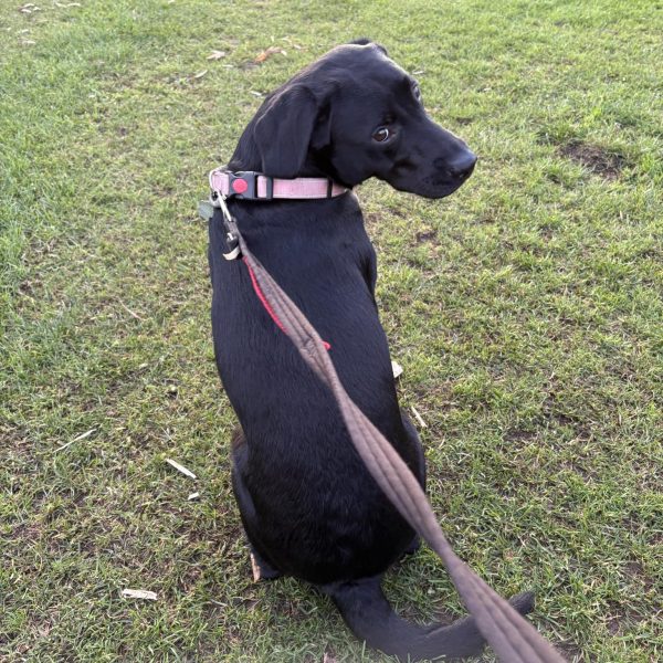She loves walks, being outside and is full of fun. She has not been off lead away from home so she will need to have work on recall before she is allowed off the lead. Where we live there is a lot of fenced space for her to be off lead and she loves to explore and run around. Her recall when running around at home is mixed, depending on how interested she is in what she is doing! So definitely more work needed with recall.