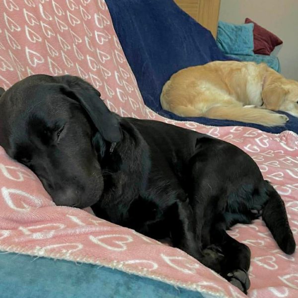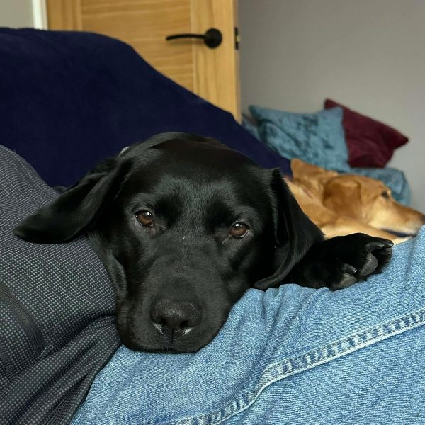 Izzy is a beautiful, petite 19-month-old black lab. She is typical for her age and breed; bright, curious, active, an explorer and opportunistic (you’ll need eyes in the back of your head!), snuggly and very cute! She loves to curl up for a snooze on the sofa next to you.