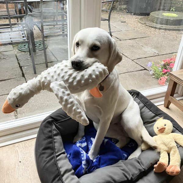 Clover likes her soft toys and a ball. She likes to play fetch with a ball but she will let you know when she has had enough by hiding the ball or just not bringing it back to you.