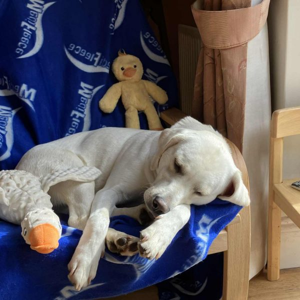 She is very well behaved and sleep brilliantly at night downstairs on her own in a dog bed most of the time. ( Although she does like chairs to sleep on as well).